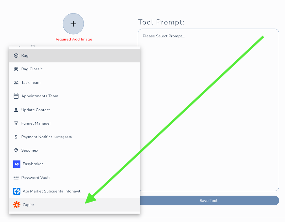 Paso 2: Crear la herramienta Zapier en Minds2.ai