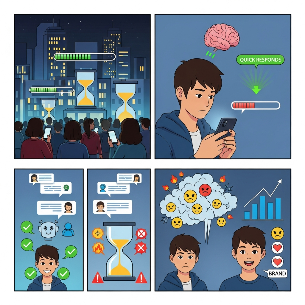 Vivimos en una era donde la velocidad lo es todo: la transformación digital, los smartphones y las plataformas bajo demanda han generado una cultura de inmediatez en la que los consumidores esperan respuestas casi instantáneas. Esta necesidad está arraigada psicológicamente, ya que recibir soluciones rápidas activa nuestro sistema de recompensa cerebral, generando satisfacción. Las redes sociales y apps están diseñadas para estímulos inmediatos, lo que ha reducido nuestra tolerancia a la espera. Hoy, el cliente espera ser atendido en segundos, ya sea por humanos o por chatbots, y una demora puede interpretarse como desinterés. En redes sociales, incluso una queja sin respuesta en el primer minuto puede escalar a una crisis. Por eso, responder con rapidez no es solo una cuestión de servicio, sino una exigencia emocional, reputacional y comercial.